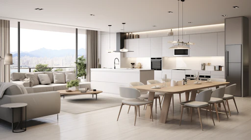 広いLDや対面式キッチンの一体感が感じられる開放的な空間。
