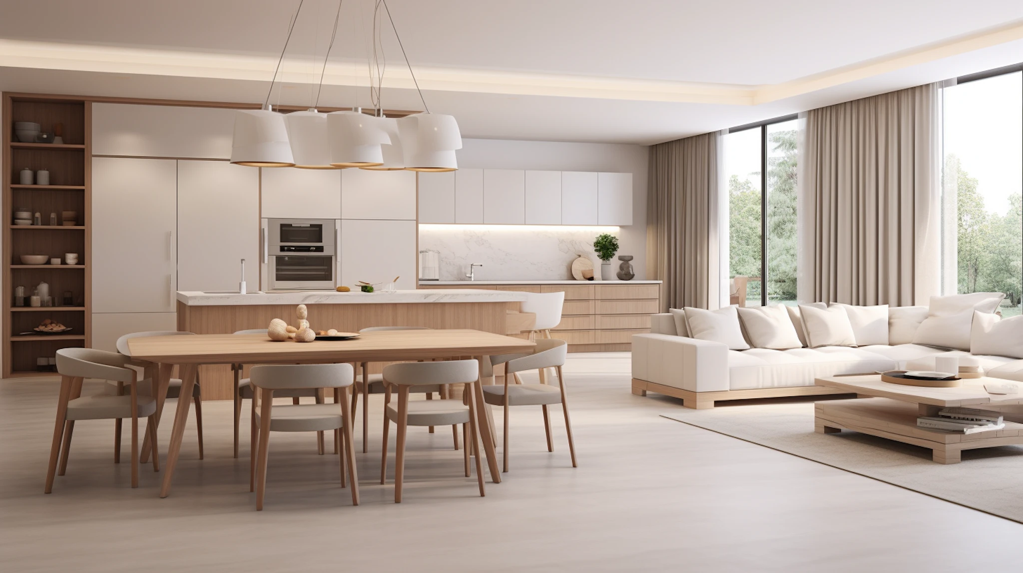 広いLDや対面式キッチンの一体感が感じられる開放的な空間。